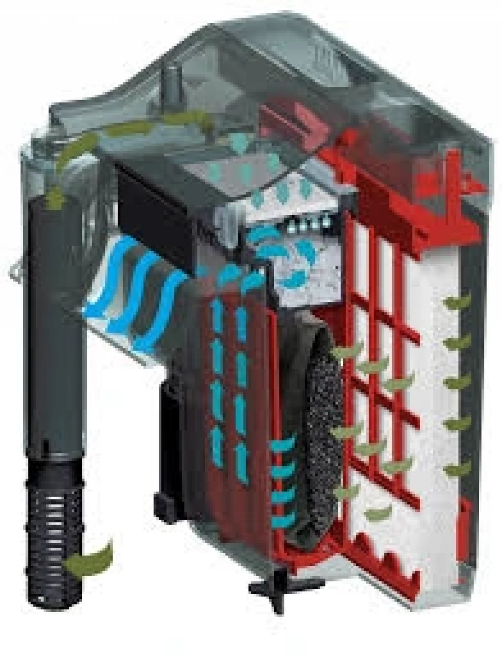 Titiz 2 aşamalı mekanik filtreleme etkin büyük ve ince çöpleri yakalar poli / köpük kalın bir tabaka ile gerçekleştirilir. Köpük hızlı temizlik için kolayca dışarı kayar. Kolay yönetilebilir ve çıkarılabilir sepette bulunan aktif karbon, kapsamlı kimyasal filtrasyon gerçekleştirir ve etkili toksinleri temizler.